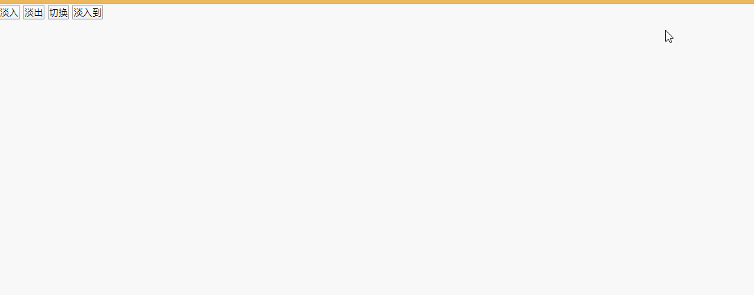 $(function () {// 编写jQuery相关代码$(\"button\").eq(0).click(function () {$(\"div\").fadeIn(1000, function () {alert(\"淡入完毕\")})})$(\"button\").eq(1).click(function () {$(\"div\").fadeOut(1000, function () {alert(\"淡出完毕\")})})$(\"button\").eq(2).click(function () {$(\"div\").fadeToggle(1000, function () {alert(\"切换完毕\")})})$(\"button\").eq(3).click(function () {$(\"div\").fadeTo(1000, 0.2, function () {alert(\"淡入完毕\")})})})