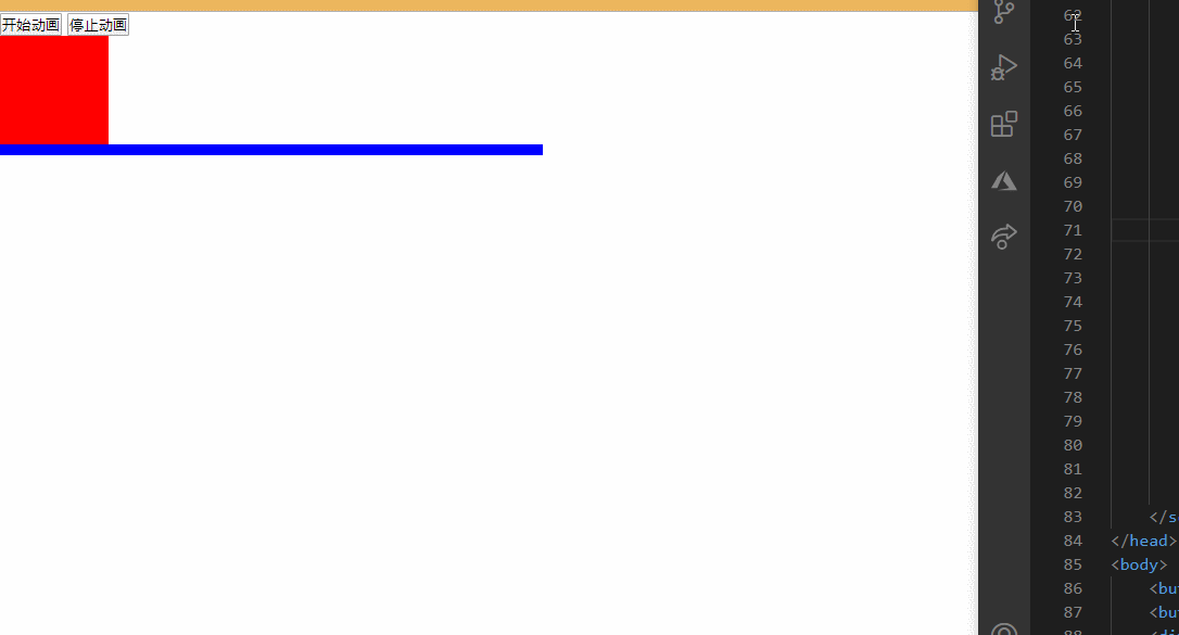 $(function () {// 编写jQuery相关代码$(\"button\").eq(0).click(function () {$(\".one\").animate({width: 500}, 1000, function () {alert(\"自定义动画执行完毕\")})$(\".one\").animate({marginLeft: 500}, 5000, function () {// alert(\"自定义动画执行完毕\")})$(\".two\").animate({marginLeft: 500}, 5000, \"linear\", function () {// alert(\"自定义动画执行完毕\");})})$(\"button\").eq(1).click(function () {$(\".one\").animate({width: \"+=100\"}, 1000, function () {alert(\"自定义动画执行完毕\");})})$(\"button\").eq(2).click(function () {$(\".one\").animate({// width: \"hide\"width: \"toggle\"}, 1000, function () {alert(\"自定义动画执行完毕\")})})})