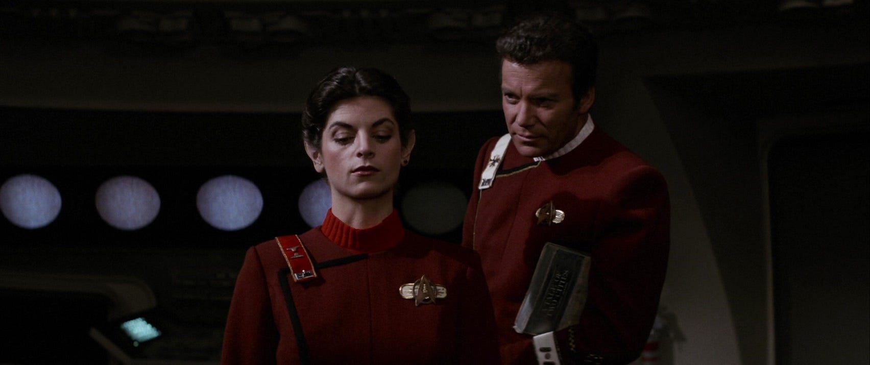 Admiral Kirk evaluates cadet Saavik’s performance on the Kobayashi Maru simulation. Image credits to Paramount Pictures. 柯克海军上将通过Kobayashi Maru模拟评估学员Saavik的表现。 图片归功于派拉蒙影业。
