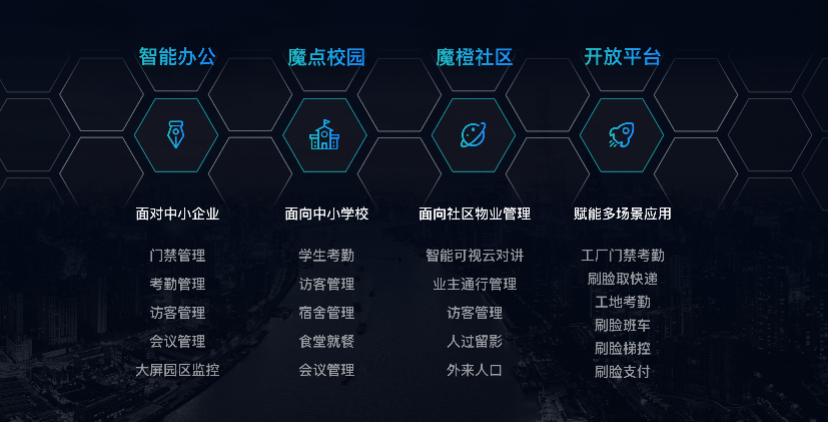 魔点科技认为的关键节点,就是从智能门禁这一节点不断切入办公、校园、社区、工地、政务、房地产等领域,将场景内的人、物、事、组织通过一个智能终端连接,打破单点项目的“数据孤岛”状态,打通组织内的数据协同,进而更有机会将设备产品渗透到各个应用场所。