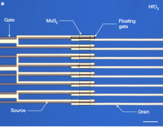 该团队的第一批电子芯片制备,都是基于手工剥离的 MoS2 材料制成的,成功率都比较低。在当时的知识体系和实验条件下,研究人员并不清楚如何增强芯片可靠性。此后,该团队发现,用当前的知识可以制造出结合闪存和晶体管的电路,并可做到只用闪存就能完成记忆和运算等所有工作。
