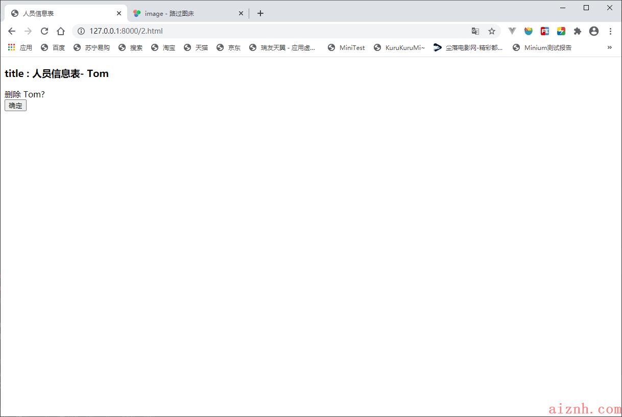 <!DOCTYPE html><html lang="en"><head><meta charset="UTF-8"><title>{{ title }}</title></head><body><h3>title : {{ title }}- {{ personinfo.name }}</h3><form method="post">{% csrf_token %}<div>删除 {{ personinfo.name }}?</div><input type="submit" value="确定"></form><br></body></html>