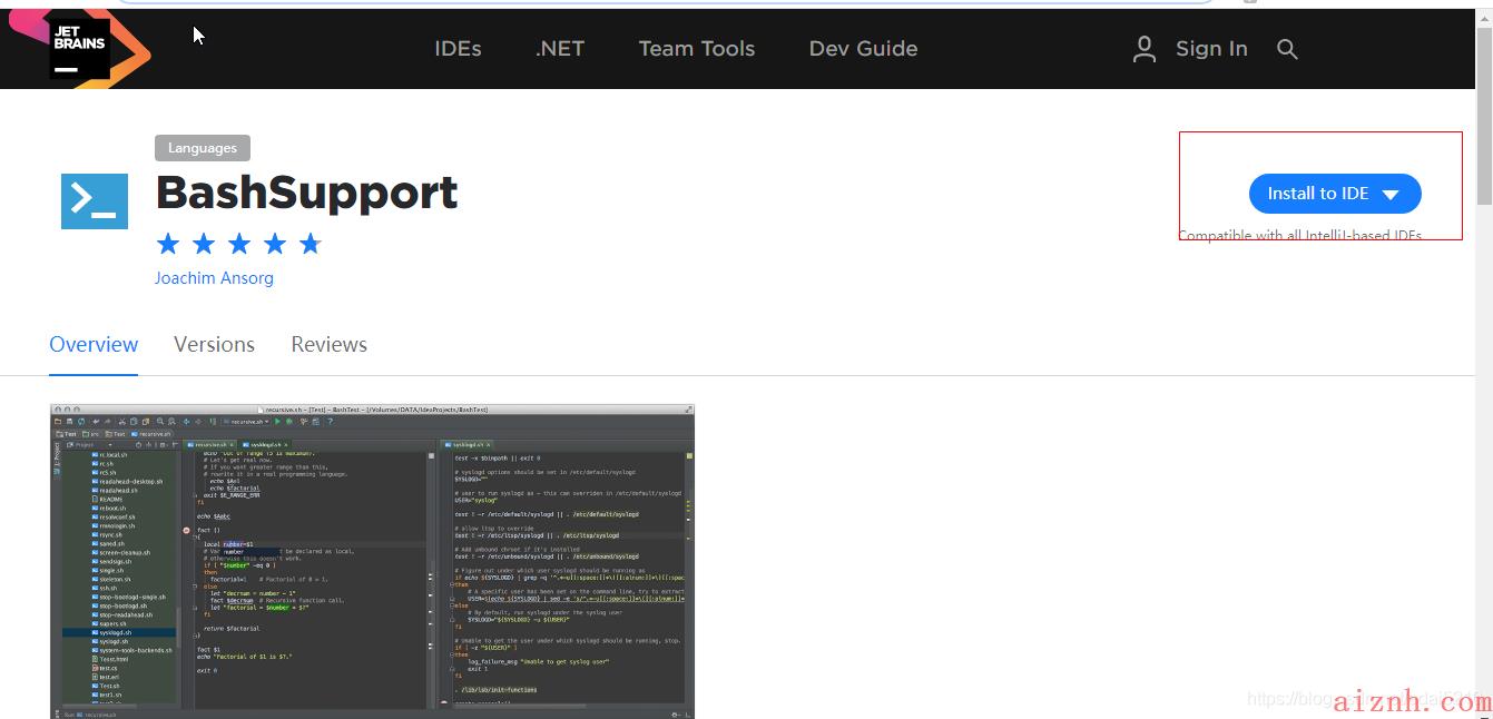 再说第二个,解决完第一个问题以后,我觉得也像是插件没有安装一键,百度了一下,没有找到,但由类似的,更坚定了我没有装插件的想法,单独把“bashsupport”百度了一下,第一条记录就是jetbrains.com的官网https://plugins.jetbrains.com/plugin/4230-bashsupport,点进去以后